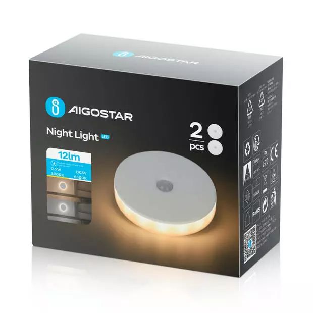 Deze energiezuinige lamp met bewegingssensor gaat automatisch aan als er beweging is als het donker is. U kunt ook gemakkelijk de gewenste helderheid dimmen. Het ronde en compacte formaat maakt het tot een ideale nachtlamp voor uw slaapkamer, badkamer,