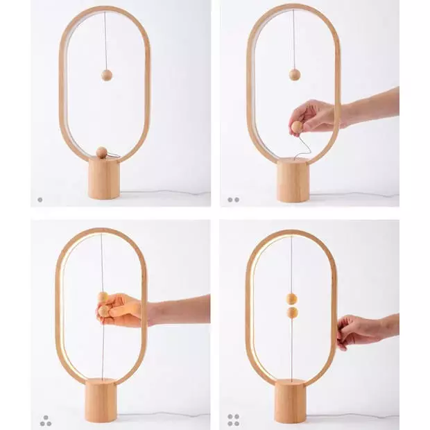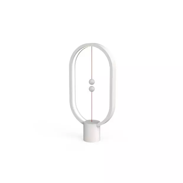 Wanneer je het onderste balletje optilt zal deze door het bovenste balletje aangetrokken worden waardoor het licht aan gaat. Zolang de balletjes in balans zijn zal de lamp blijven branden. Wil je de lamp uit doen? Doorbreek dan de balans door het onderste balletje weg te nemen bij het bovenste balletje en deze op de voet van de lamp te plaatsen. In de voet van de Heng Balance lamp zit een magneetje, zodat het balletje mooi blijft liggen.