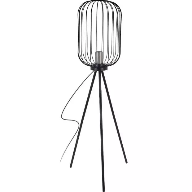 De lamp heeft een industrieel art deco- design en is gemaakt van zwart ijzerdraad dat gemakkelijk te verplaatsen is vanwege zijn lichtgewicht.