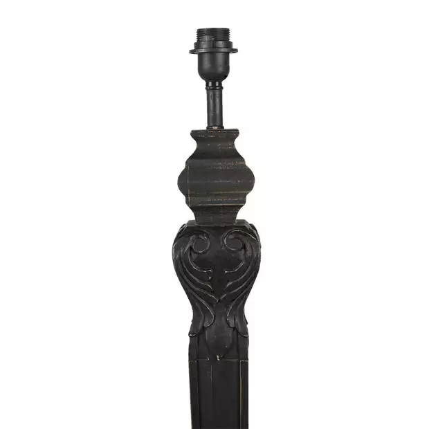 Mooi vormgegeven zwart houten vloerlamp voor in een landelijk of klassiek interieur van het merk Clayre & Eef.
