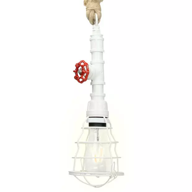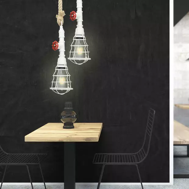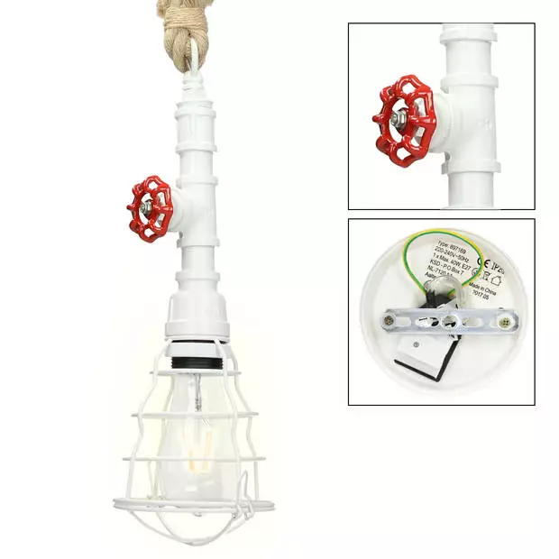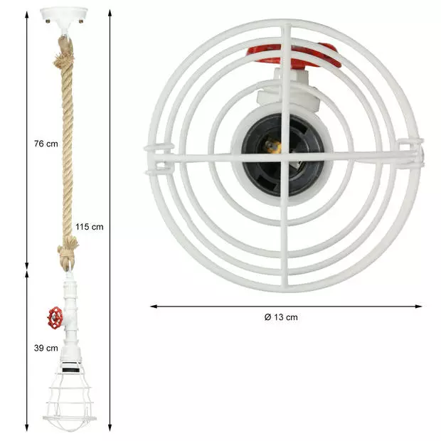Voeg de perfecte retro chic toe aan uw huis met deze hanglamp van ECD Germany. De lamp in industrieel ontwerp bekoort met zijn klassieke metalen beschermkorf en een lamphuis van oude waterpijpelementen. De kabel loopt verborgen door een rustiek henneptouw.