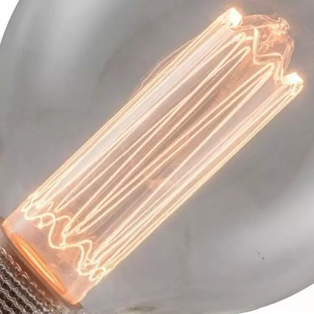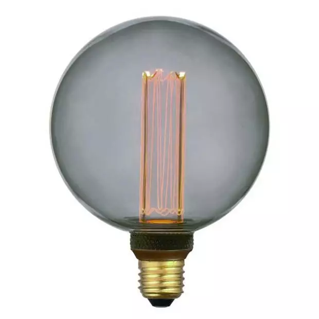 Een grote Rook glazen LED-lamp met de uitstraling van een ouderwetse kooldraad gloeilamp. Deze globe bol heeft een diameter van 12,5 cm, de totale hoogte is 17,5 cm. Het rook glas en het “kooldraad” effect geven aan elke armatuur een unieke uitstraling. De lichtkleur is 1800 Kelvin en dat is een mooie sfeervolle en warme kleur.