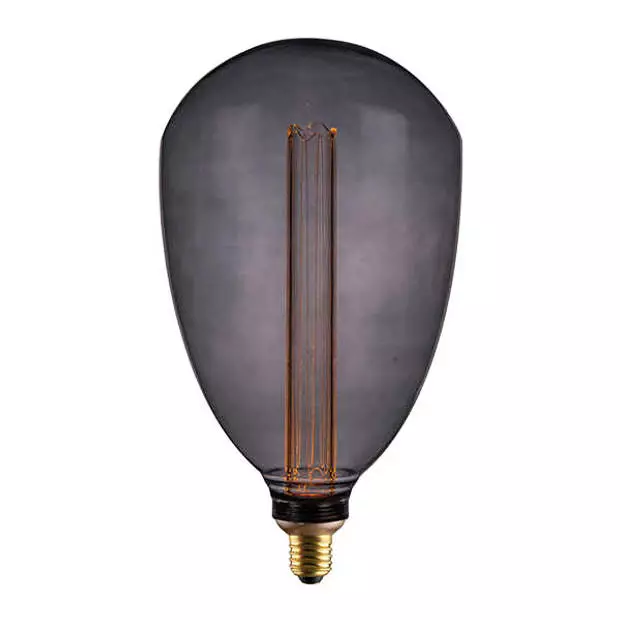 Een Rook XXL LED-lamp met de uitstraling van een ouderwetse kooldraad gloeilamp. Deze mega globe bol heeft een diameter van 17 cm, de totale hoogte is 30 cm. Het rookglas en het “kooldraad” effect geven aan elke armatuur een unieke uitstraling. De lichtkleur is 1800 Kelvin en dat is een mooie sfeervolle en warme kleur.