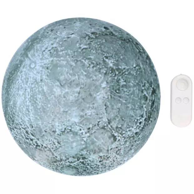 De wandlamp werkt met een afstandbediening. Hiermee zet je de maanlamp aan en uit en kun je switchen tussen de 12 verschillende instellingen. Je kunt hem handmatig aan of uit zetten of de automodus gebruiken. De maan gaat dan vanzelf schijnen als het donker wordt in de kamer en doorloopt elke 5 seconden een maancyclus. Na 45 minuten schakelt de maanlamp weer vanzelf uit. Zo kan je zelf of je kind heerlijk in slaapvallen bij het licht van de maan.