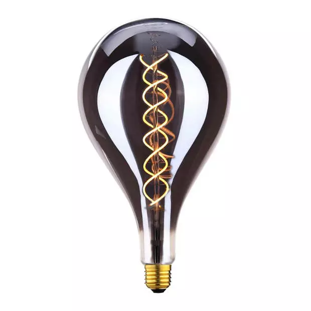 Een Rook XXL LED-lamp met de uitstraling van een ouderwetse kooldraad gloeilamp. Deze mega globe bol heeft een diameter van 16 cm, de totale hoogte is 28 cm. Het rookglas en het “kooldraad” effect geven aan elke armatuur een unieke uitstraling. De lichtkleur is 2200 Kelvin en dat is een mooie sfeervolle en warme kleur.