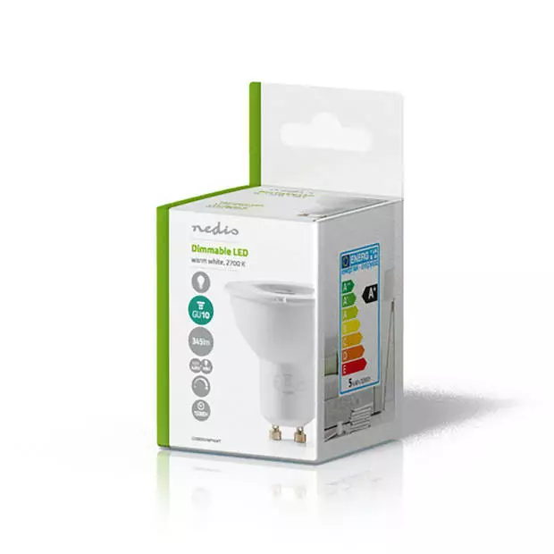 De lamp verspreidt een warm wit licht met een kleurtemperatuur van 2700 kelvin.