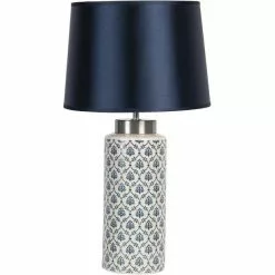 HAES DECO – Tafellamp – Modern Chic – Stijlvolle Lamp, Ø 20×35 Cm – Blauw/Wit – Bureaulamp, Sfeerlamp, Nachtlampje