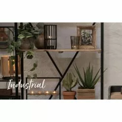 HAES DECO – Tafellamp – Industrial – Vintage / Retro Lamp, Ø 25×30 Cm – Bruin Hout – Bureaulamp, Sfeerlamp, Nachtlampje