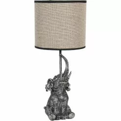 HAES DECO – Tafellamp – City Jungle – Olifant Lamp, Ø 20×45 Cm – Beige/Grijs – Bureaulamp, Sfeerlamp, Nachtlampje