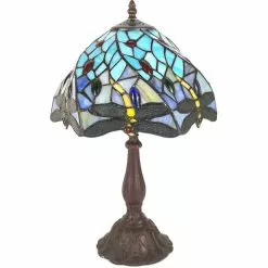HAES DECO – Tiffany Tafellamp Blauw Ø 27×48 Cm Fitting E27 / Lamp Max 1x60W