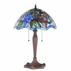 HAES DECO – Tiffany Tafellamp Blauw Ø 41×60 Cm Fitting E27 / Lamp Max 2x60W