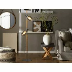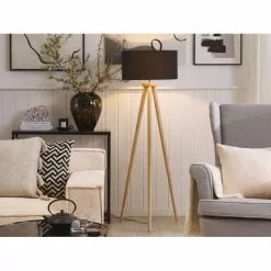 Beliani NITRA – Staande Lamp-Zwart-Eikenhout