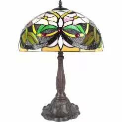 HAES DECO – Tiffany Tafellamp Creme, Bruin Ø 40×61 Cm Fitting E27 / Lamp Max 2x60W