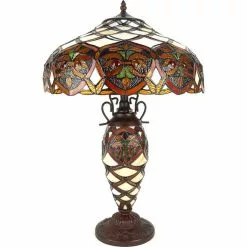 HAES DECO – Tiffany Tafellamp Creme 41x23x57 Cm Fitting E27 / Lamp Max 2x40W