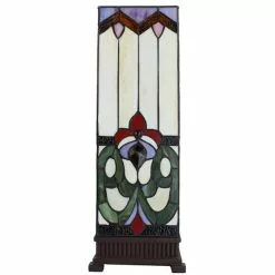 HAES DECO – Tiffany Tafellamp Creme, Geel, Rood 18x18x48 Cm Fitting E14 / Lamp Max 1x40W