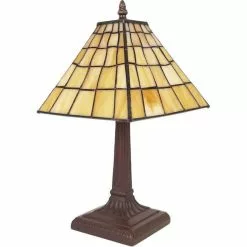 HAES DECO – Tiffany Tafellamp Geel, Bruin 14x13x37 Cm Fitting E14 / Lamp Max 1x40W