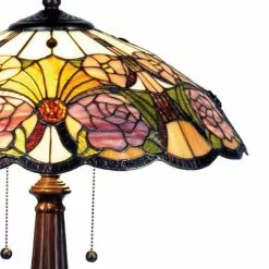 HAES DECO – Tiffany Tafellamp Geel, Groen, Roze Ø 44×57 Cm Fitting E27 / Lamp Max 2x60W