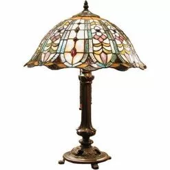 HAES DECO – Tiffany Tafellamp Creme, Bruin, Rood, Groen Ø 20×36 Cm Fitting E14 / Lamp Max 1x25W