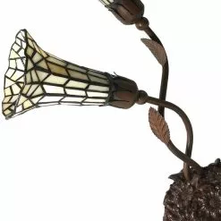 HAES DECO – Tiffany Tafellamp Kat Bruin, Wit 21x11x25 Cm Fitting E14 / Lamp Max 1x40W