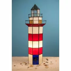 HAES DECO – Tiffany Tafellamp Vuurtoren Rood, Wit Ø 21×56 Cm Fitting E14 / Lamp Max 2x25W
