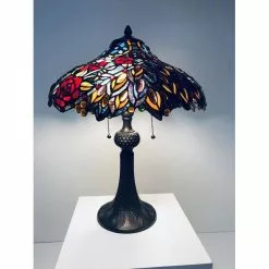 HAES DECO – Tiffany Tafellamp Rood, Groen, Wit Ø 43×58 Cm Fitting E27 / Lamp Max 2x60W