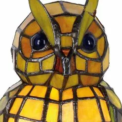 HAES DECO – Tiffany Tafellamp Uil Geel 15x12x22 Cm Fitting E14 / Lamp Max 1x40W
