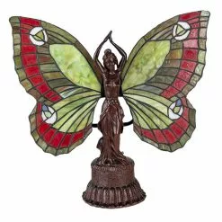 HAES DECO – Tiffany Tafellamp Vlinder Rood 41x20x41 Cm Fitting E14 / Lamp Max 2x25W