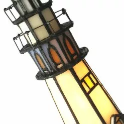 HAES DECO – Tiffany Tafellamp Vuurtoren Meerkleurig Ø 12×28 Cm Fitting E14 / Lamp Max 1x25W