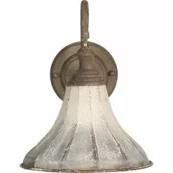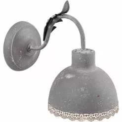HAES DECO – Wandlamp – Shabby Chic – Vintage / Retro Lamp, 15x26x24 Cm – Grijs Metaal – Ronde Muurlamp, Sfeerlamp