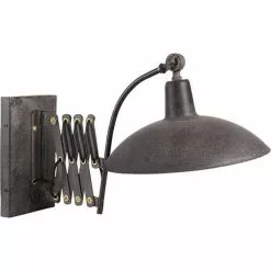 HAES DECO – Wandlamp – Industrial – Vintage / Retro Lamp, 55x33x34 Cm – Zwart Metaal – Muurlamp, Sfeerlamp