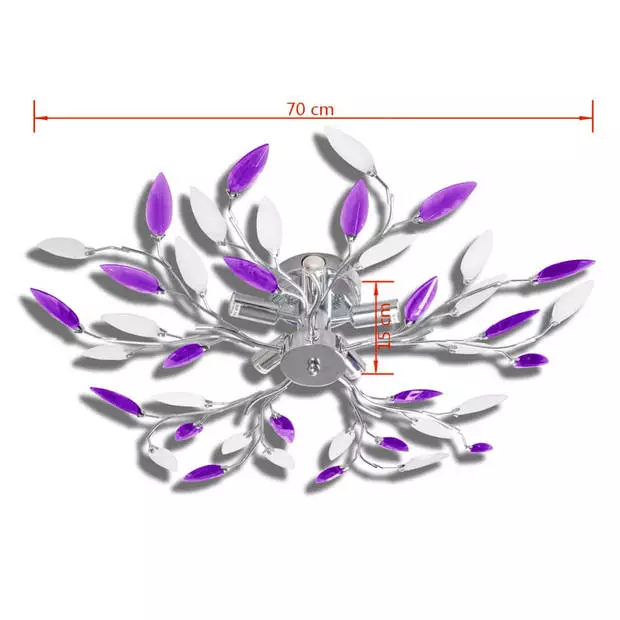 De lamp kan eenvoudig aan het plafond bevestigd worden. De acryl bladeren vangen en weerkaatsen de lichtstralen waardoor de hele kamer verlicht wordt.