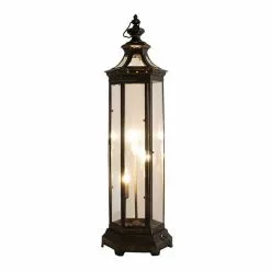 Clayre & Eef Vloerlamp 37x37x72 Cm Zwart Bruin Ijzer Glas Staande Lamp Zwart Staande Lamp