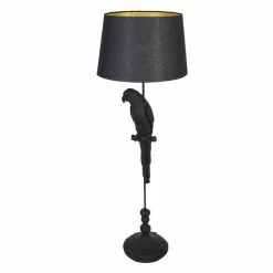 Clayre & Eef Vloerlamp Ø 37×165 Cm Zwart Goudkleurig Metaal Textiel Papegaai Staande Lamp Zwart Staande Lamp