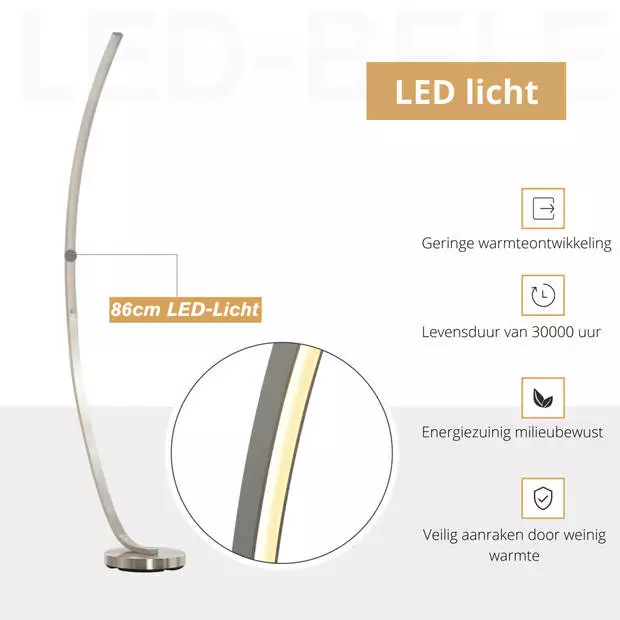 ? Stijlvolle en in het oog springende LED vloerlamp in gebogen vorm en zilverkleur